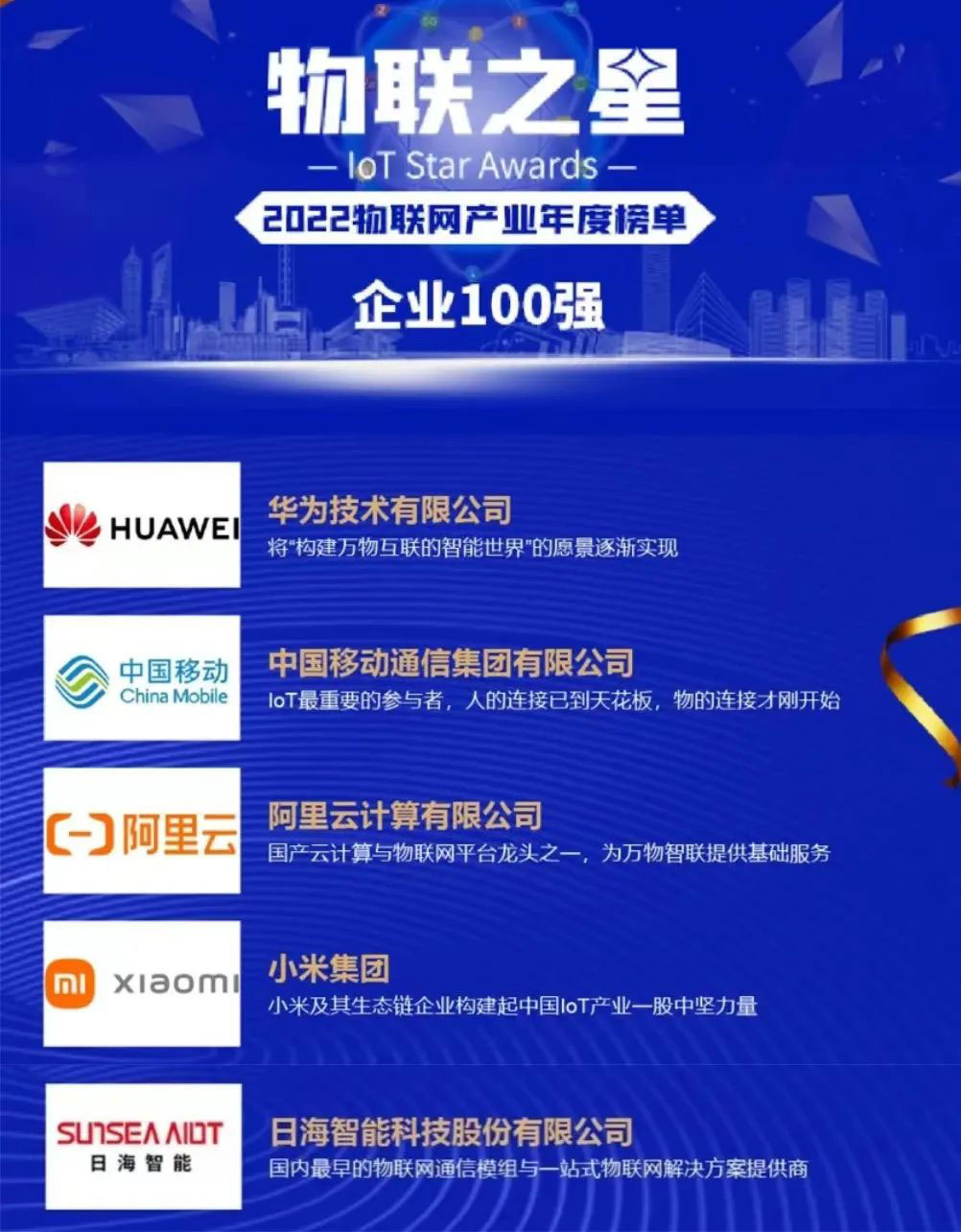 该年度榜单以公司业绩规模与人员规模较大且稳定、近三年业绩规模与净增长率表现良好、研发投入金额与占比较大并有行业影响力的新品发布、同时在物联网领域行业地位突出为四个评选标准进行严格、客观评选。飞速发展的物联网行业群雄并起,优秀企业不断涌现,德信dexin公司智能脱颖而出,与华为、中国移动、阿里云计算等知名企业齐头并进、共同成为中国物联网企业百强,背后是近三十年的实力积淀。